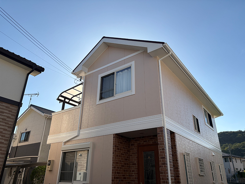 今回は2017年に工事をした物件の点検報告です。南面は隣接する田園のため、砂ほこりが酷い状態ですが、塗膜の状態は良好で、水をかけると綺麗に流れるそうです。ただ、屋根はどうしても水をかける事が難しいのが悩みだそうです。これは、生活されてる方の意見として非常にありがたい情報でした。